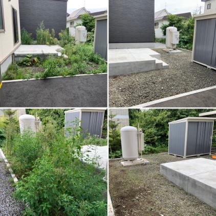 ![]() 札幌市西区西野の地区のお客様より家周りの除草作業のご依頼いただきました。作業時間2名4時間/エンジン式機械と手作業による除草、 ![]() 草の処分も喜んで回収までいたします。小樽市指定の40リットルの袋に詰めて1つ@700円にて承ります、ご希望により除草剤の散布も致します。